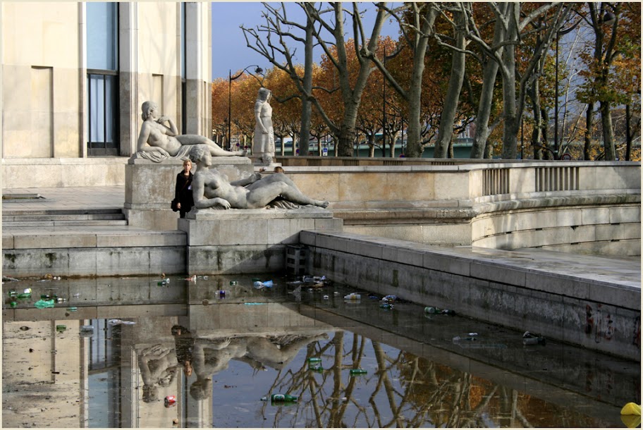 Le Palais de Tokyo abrite le Musée d'Art Moderne de la ville de Paris. Si le froid n'a pas réussi à rhabiller toutes les "belles filles", il a chassé les "amoureux" des marches et vidé le bassin.